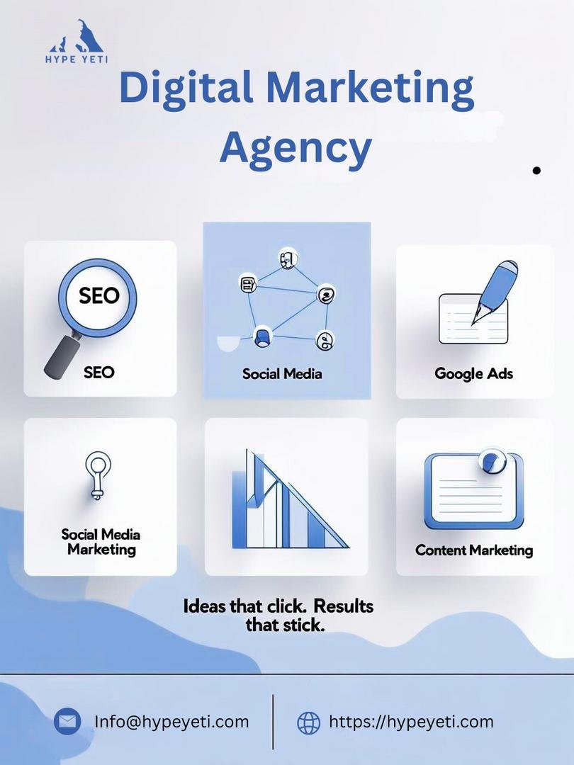 Hypeyeti Marketing Pvt. Ltd. is one of top marketing agency in Nepal established with the aim to connect your business to your customers through traditional and digital marketing methods. Our ultimate goal is to convert more clients in your business and strive to achieve it with all our might. What we offer: - Marketing strategy creation - Branding - Social media management and advertisement - Search engine optimization - Search engine advertisement - Event management and video production. -360 Marketing -Sports Marketing